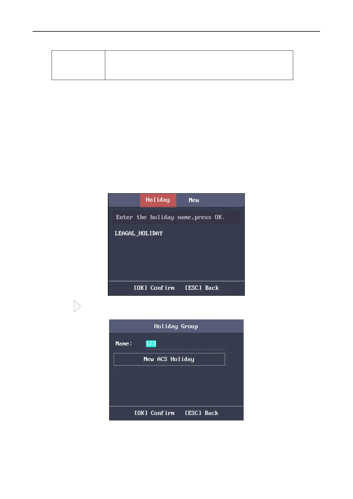 1. Select Holiday and press the OK key to enter the Holiday Group list interface.