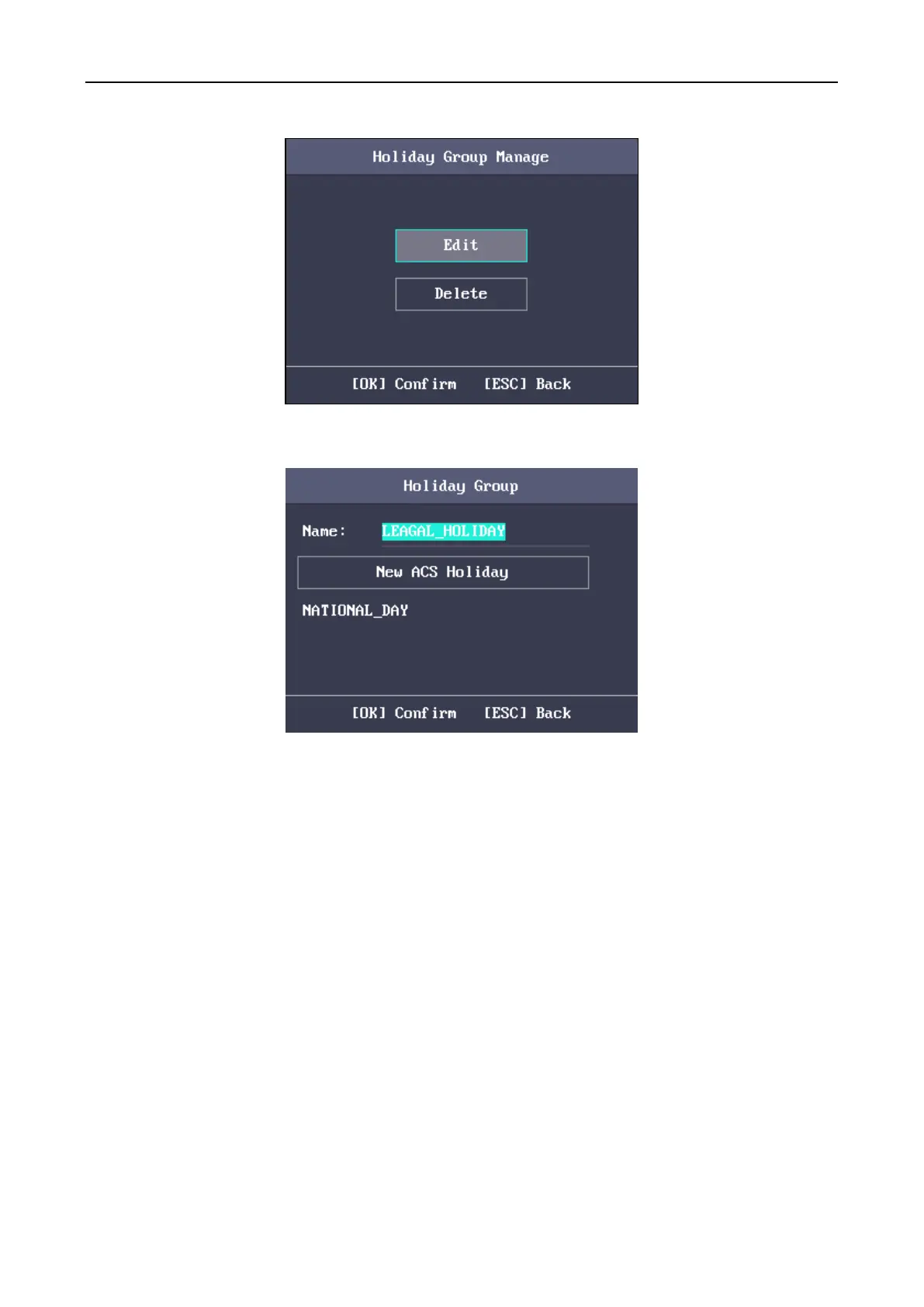 2) Edit the select holiday according to Section 0 Adding Holiday Group.