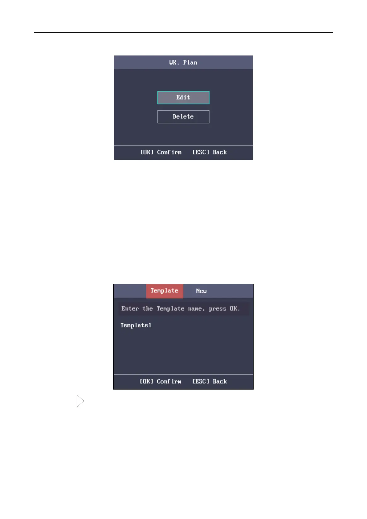 1. Select Template (Schedule Template) and press the OK key to enter the Template (Schedule