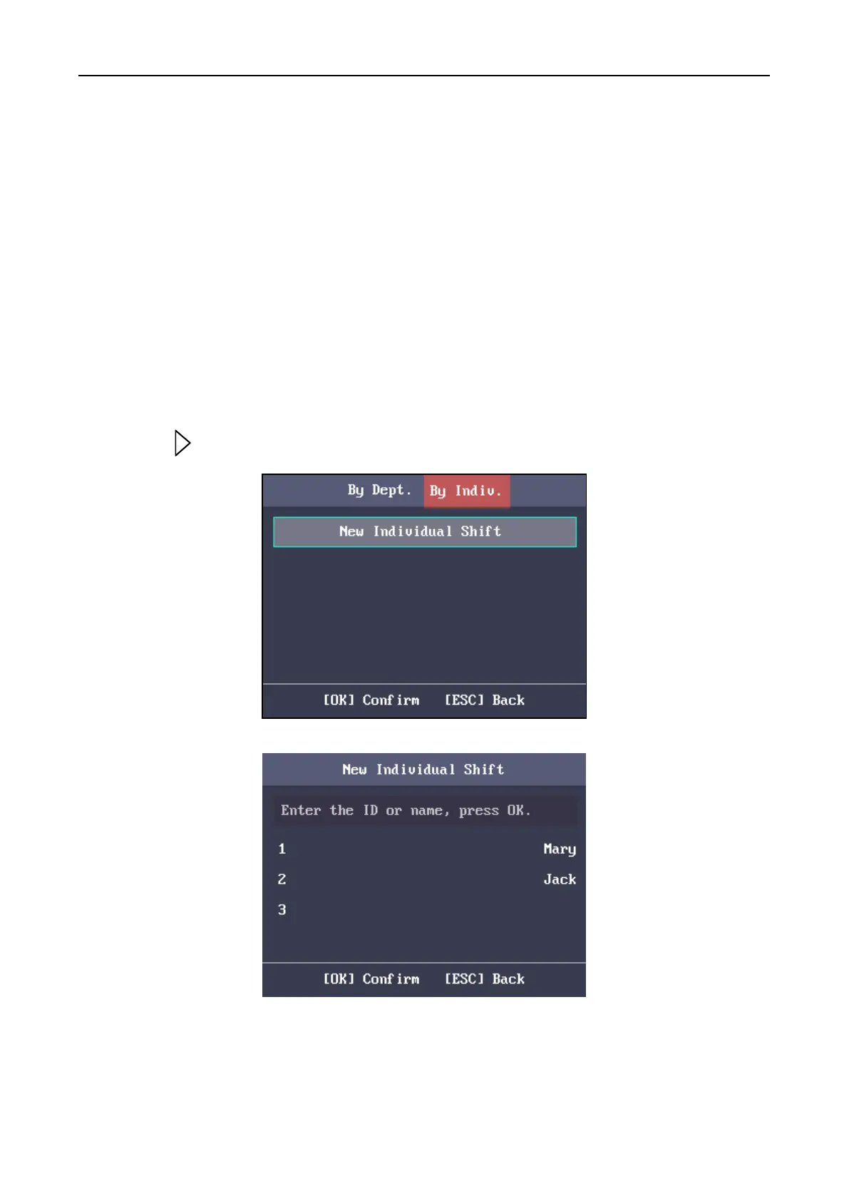 2. Select New Individual Shift and press the OK key to enter New Individual Shift interface.