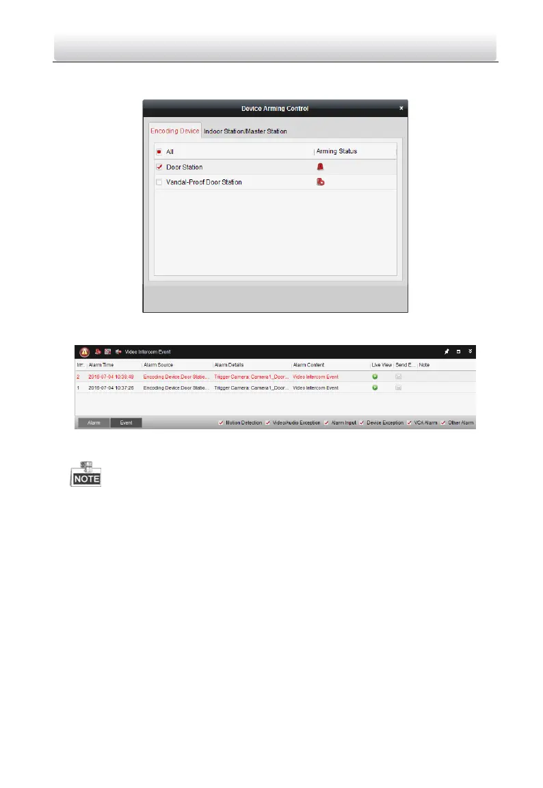 2. Set the arming status of the device as armed, and the alarm information will be auto