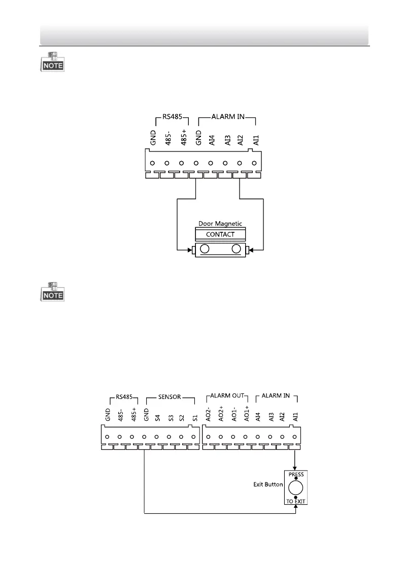 For DS-KD8102-V/DS-KD8002-VM, there are two optional ways of exit button wiring.