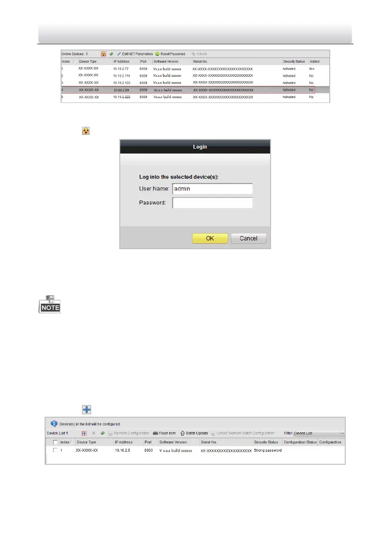 3. Enter the IP address, and set the port No., user name and password of the device.