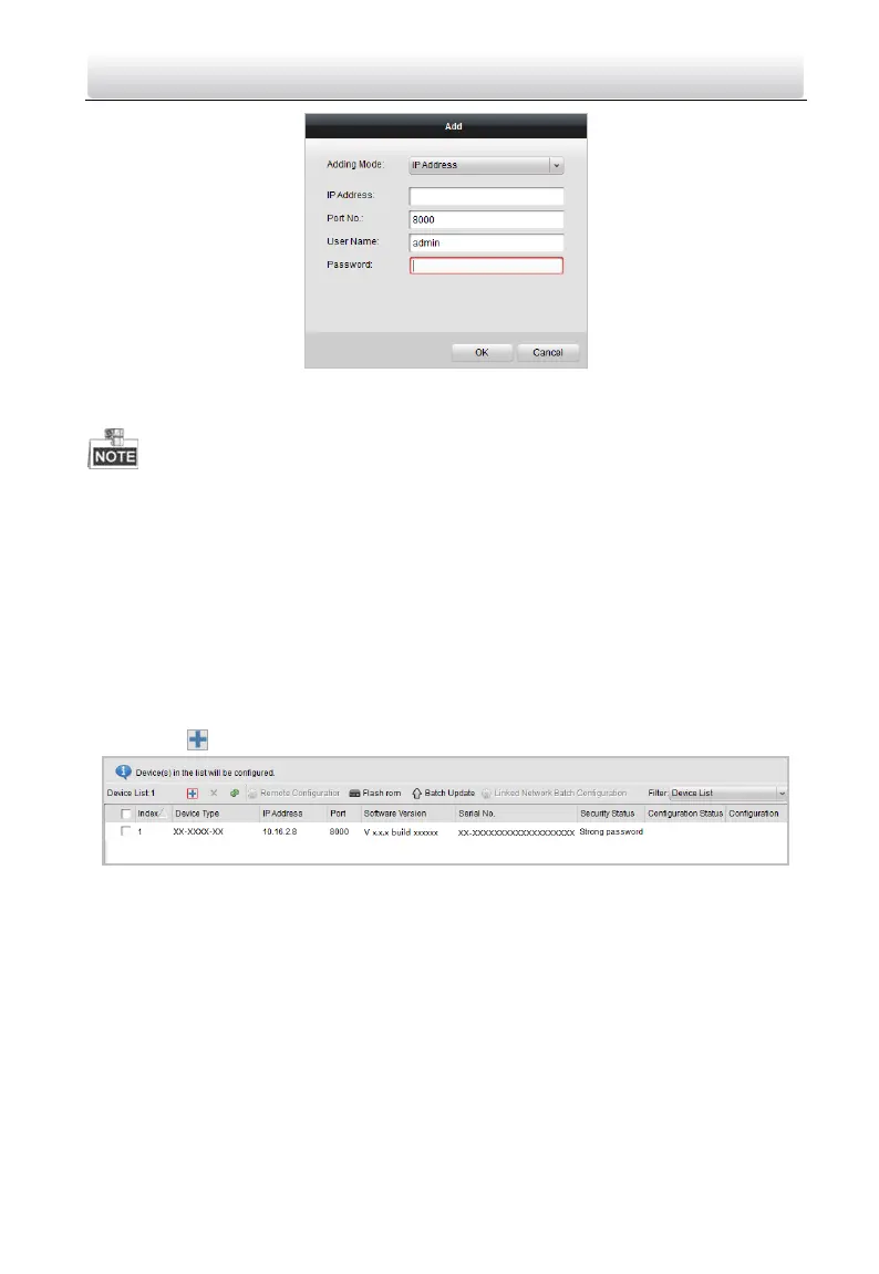When you add devices by IP Address, IP Segment or Port No., the devices should be