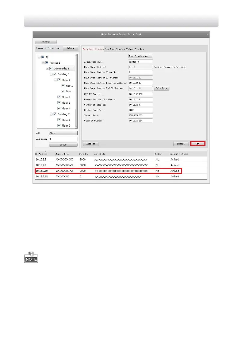 3. Enter the main door station start IP address, set the main door station floor No., and