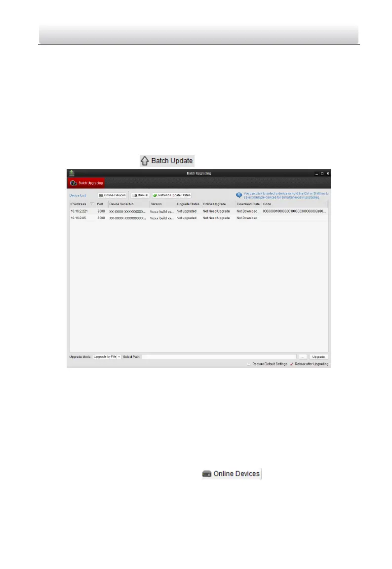 In the device list area, click to enter the batch upgrading interface.