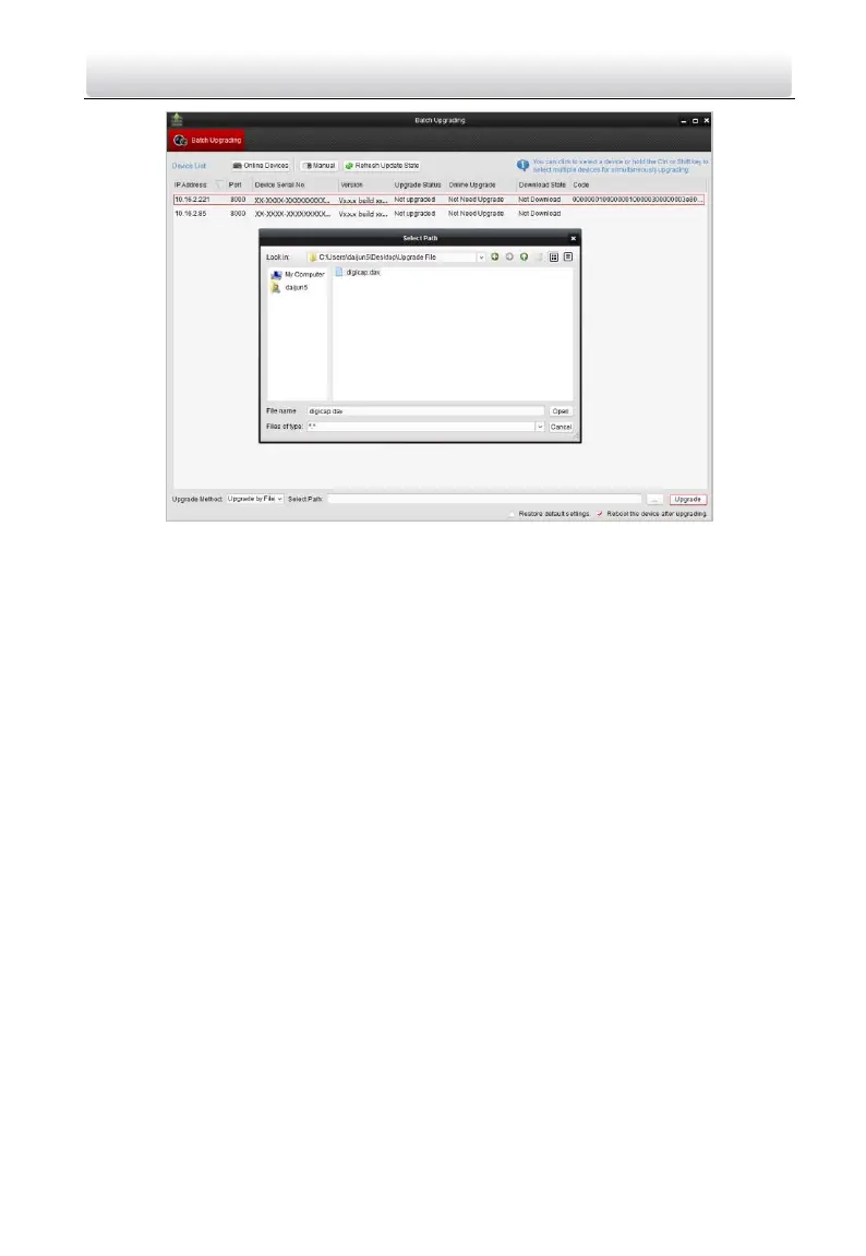 device automatically. You upgrade the device or devices via the local upgrade files.