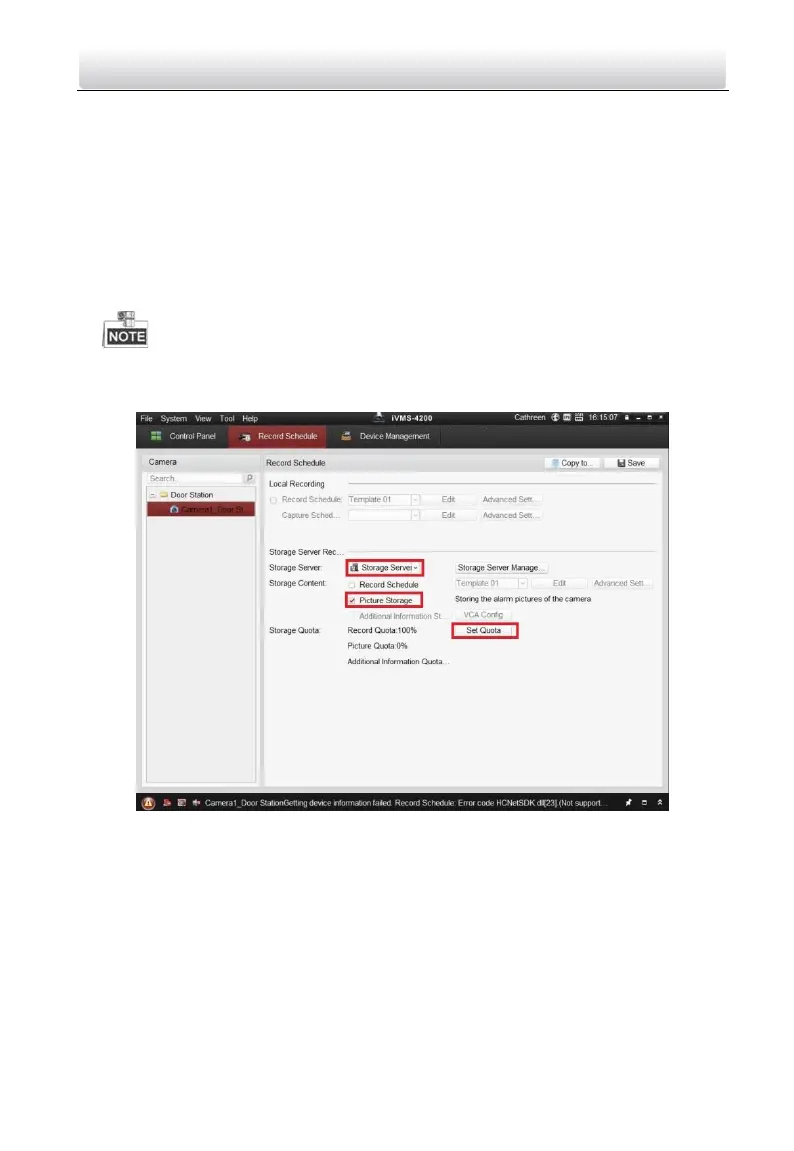 5. Click Set Quota to enter the HDD management interface of the storage server. You