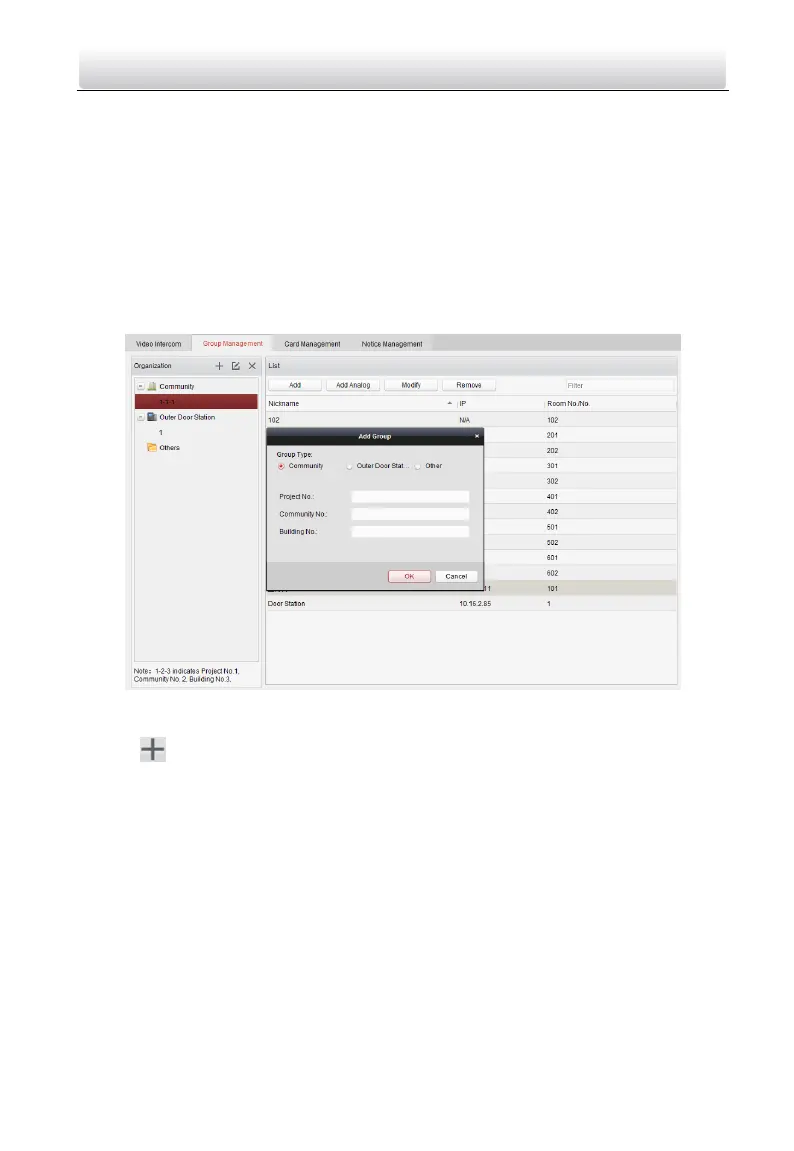 You can add groups to community, outer door station, or other, and assign devices to
