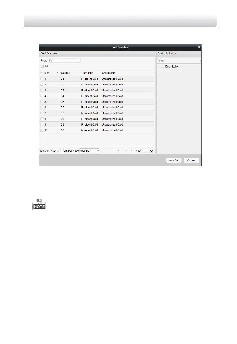 2. Click Card Selection to pop up card selection window where unauthorized resident