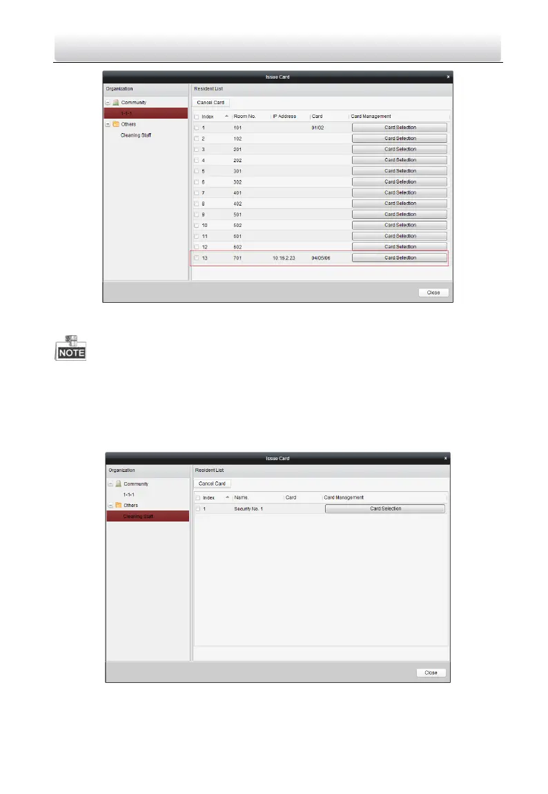 After issuing resident cards to the indoor station, the card No. will also be listed in the