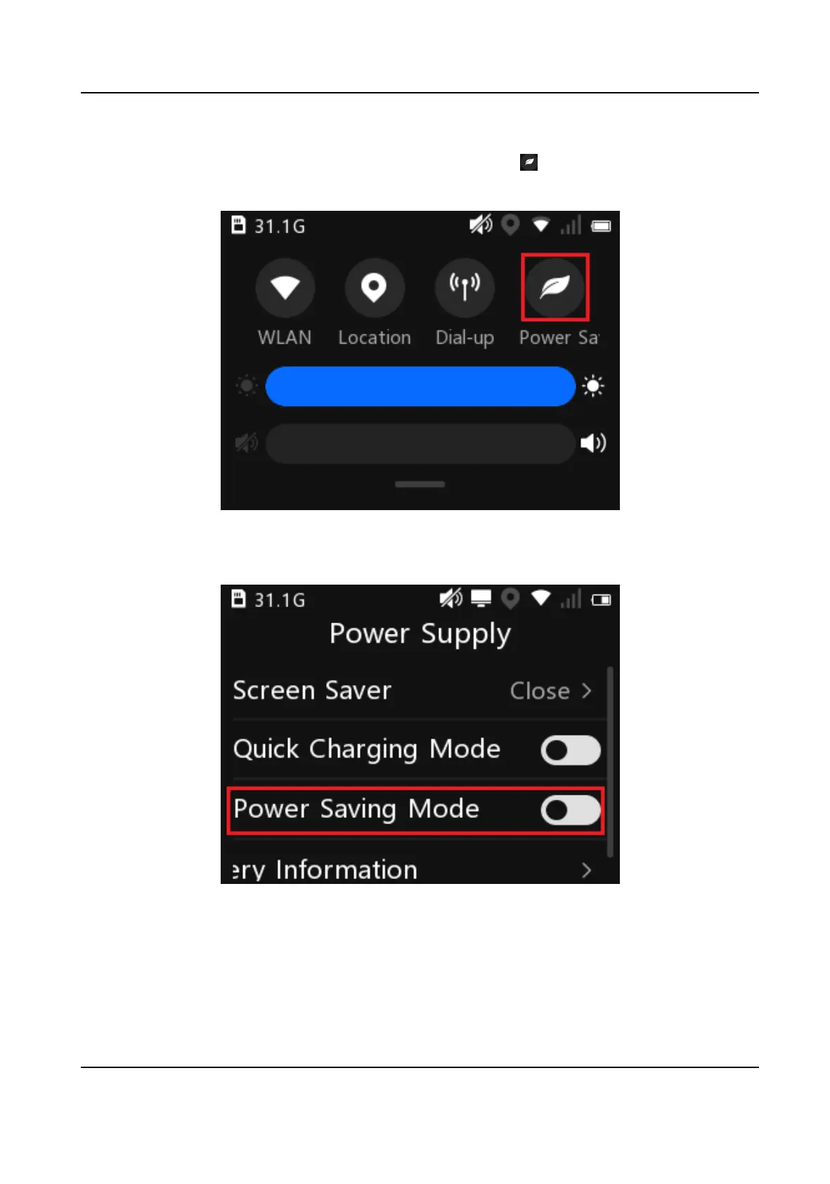 Swipe the screen down to open the nocaon center. Select to enable power saving mode.