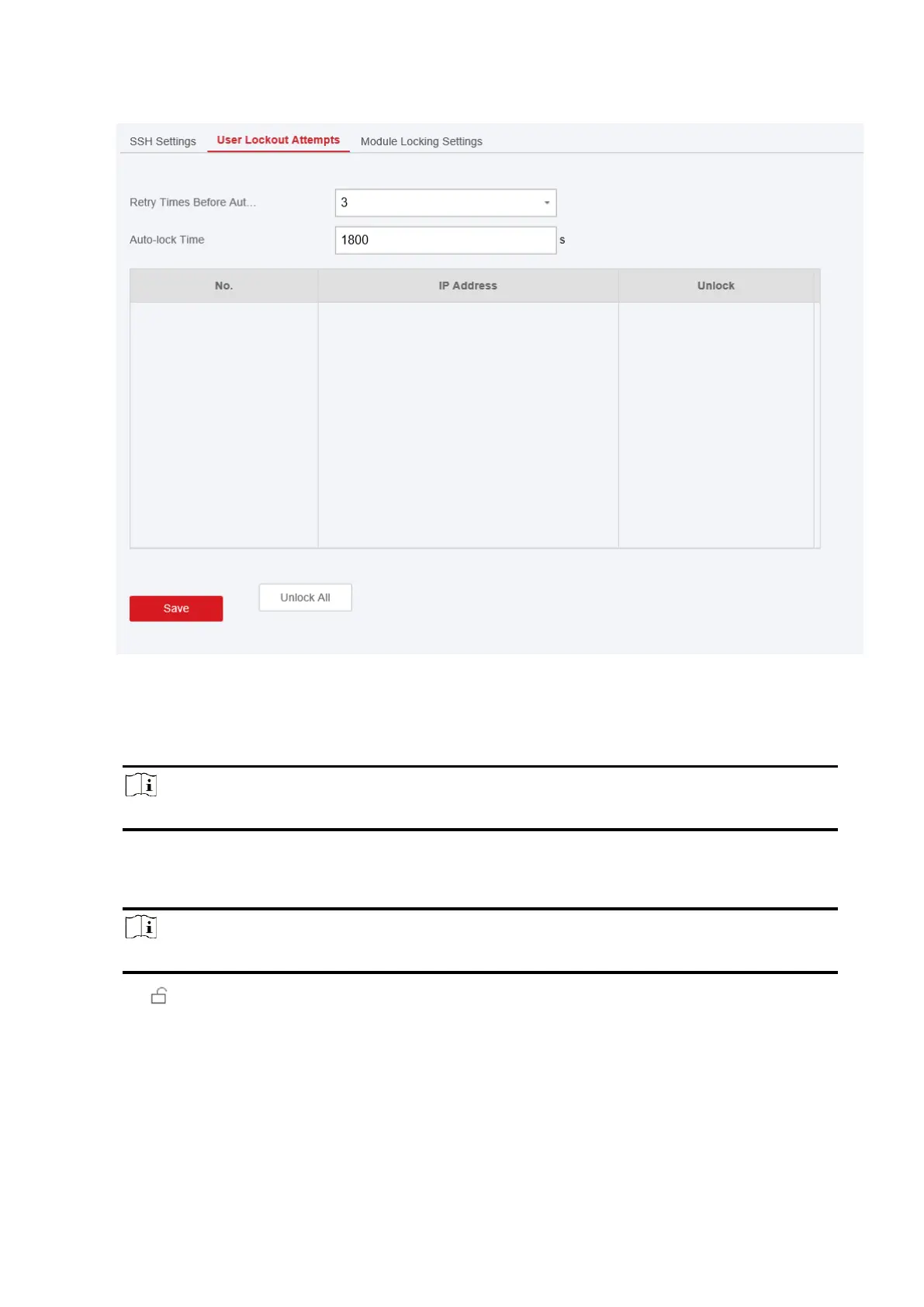 Set the module locking parameters, including the Max Failure Attempts, and locked duration. The