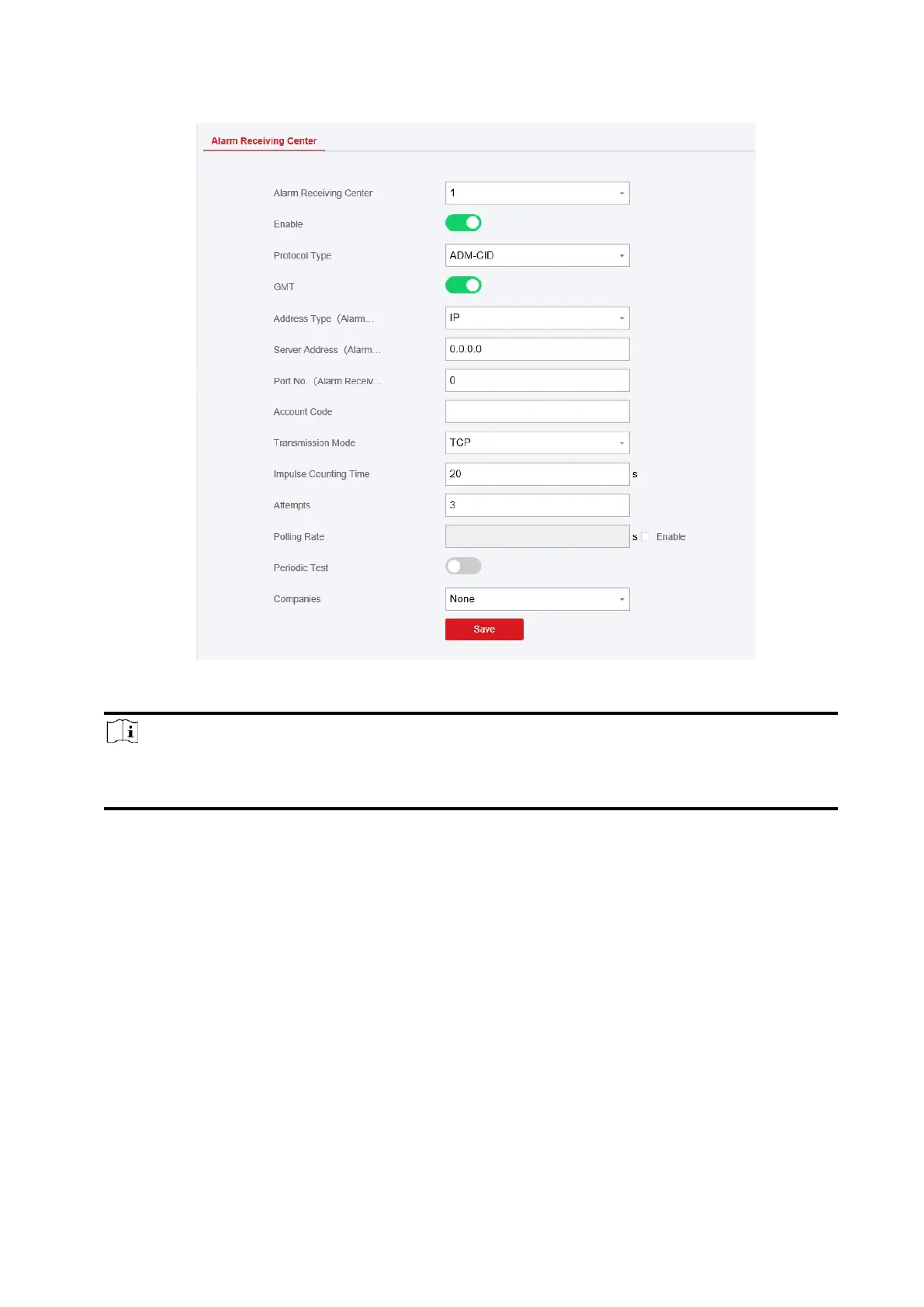 2. Select the Alarm Receiver Center as 1 or 2 for configuration, and slide the slider to enable the