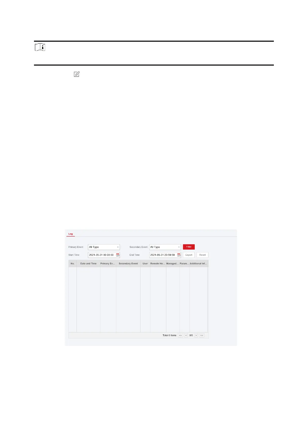 Select a major type and a minor type from the drop-down list, set the log start time and end time