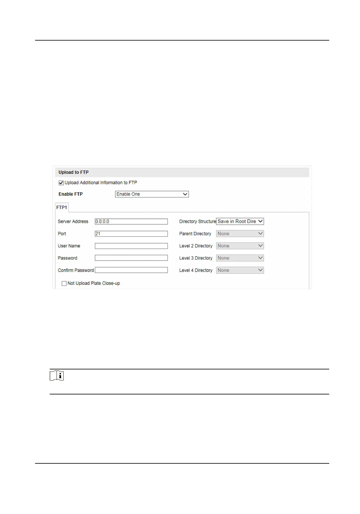 Set FTP parameters if you want to upload the captured pictures to the FTP server.