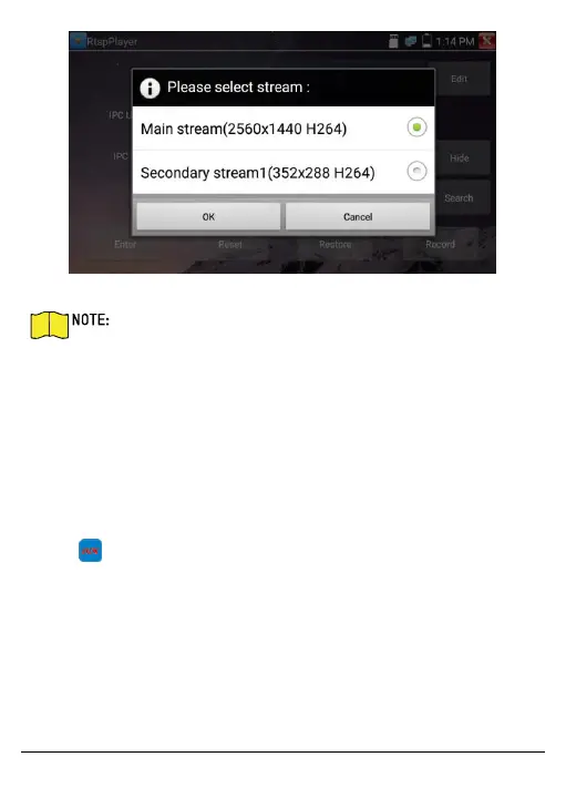 Figure 139, RTSP Player Screen – Stream Selection Menu
