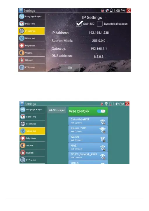 The Tester’s power output is close to 2A. If the IP camera’s power is greater than 2V, the Tester will automatically enter protection mode. Disconnect all Tester connections and reconnect the Tester to the power adaptor to resume use.