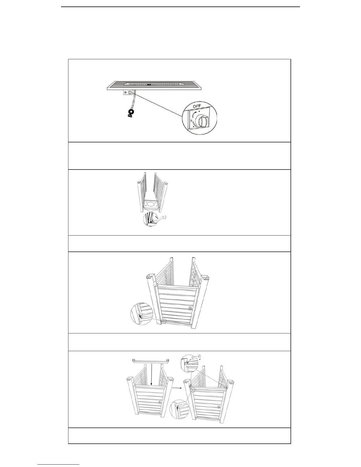 4.Attach the Rail (K) to the Door (I) and Panels (F) and (H) using 4 Screws (e)
