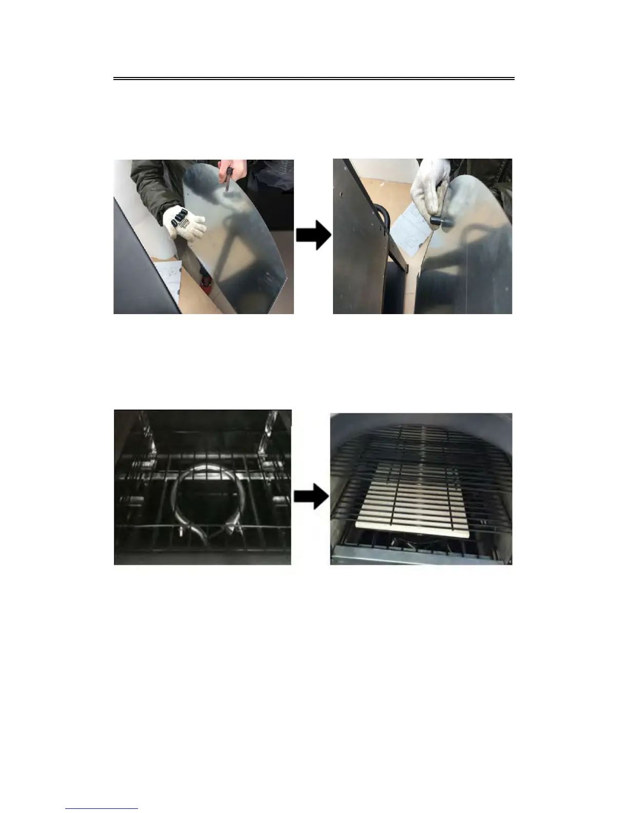 Place the boom rack, pizza stone and cooking grill (2pcs) into the oven as shown.