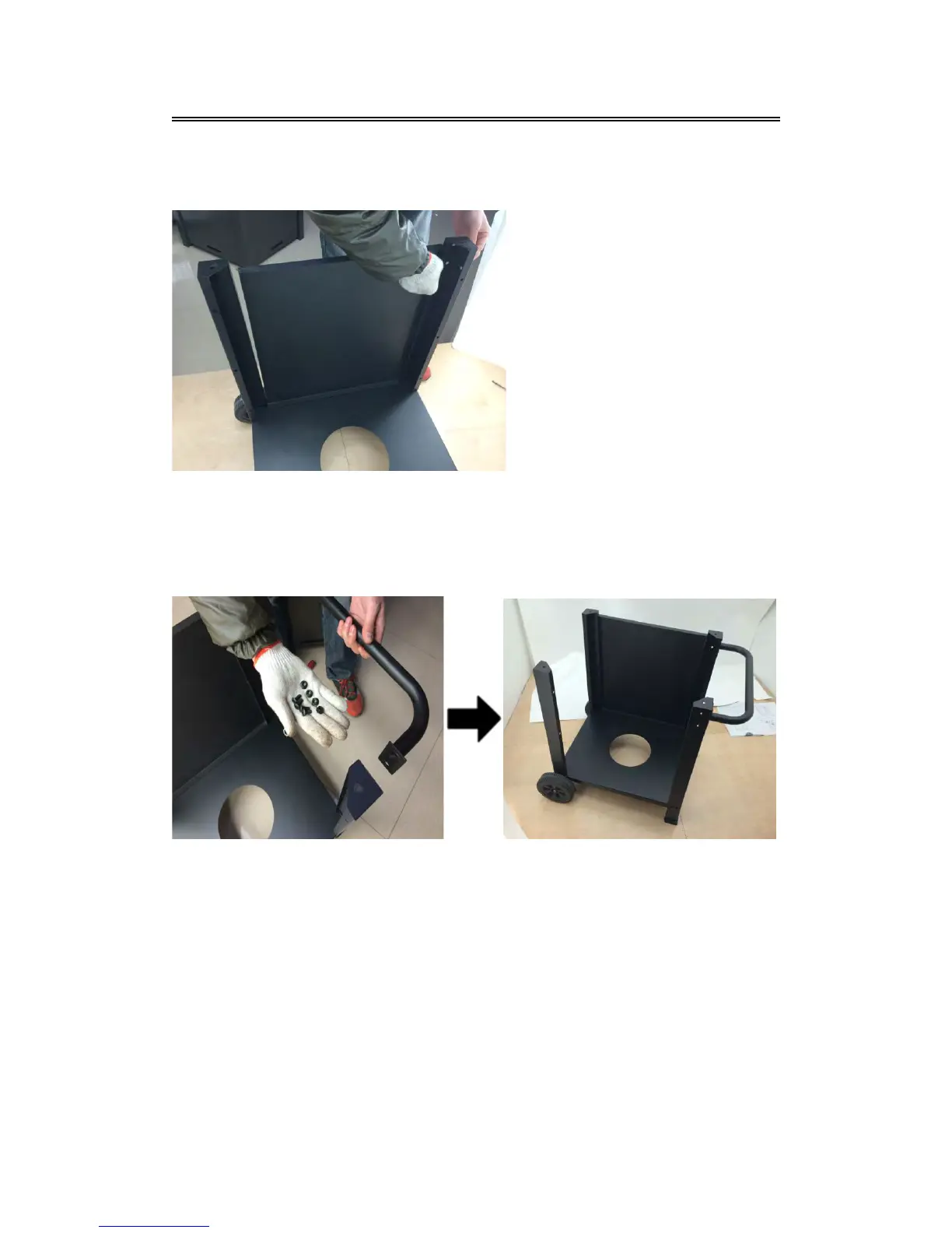 Use 6 M6*10 screws and 6 M6 nuts to assemble the Cart Front Panel to the Cart Legs.