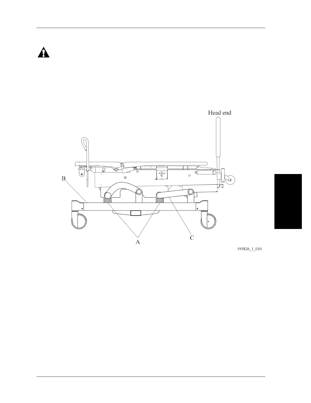 electronics plate weldment (E) to the patient’s left side of the bed.