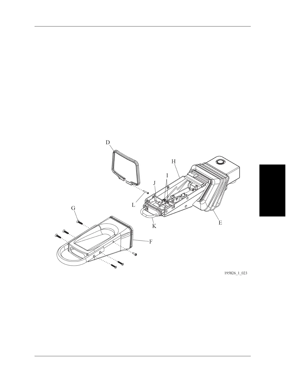 1. Remove the screw (L) that attaches the strap (D) to the foot support bellows (E) and the foot