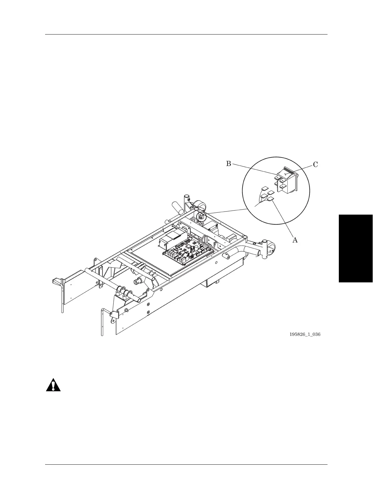 9. Compress the tabs (C) on the lockout switch assembly (B).