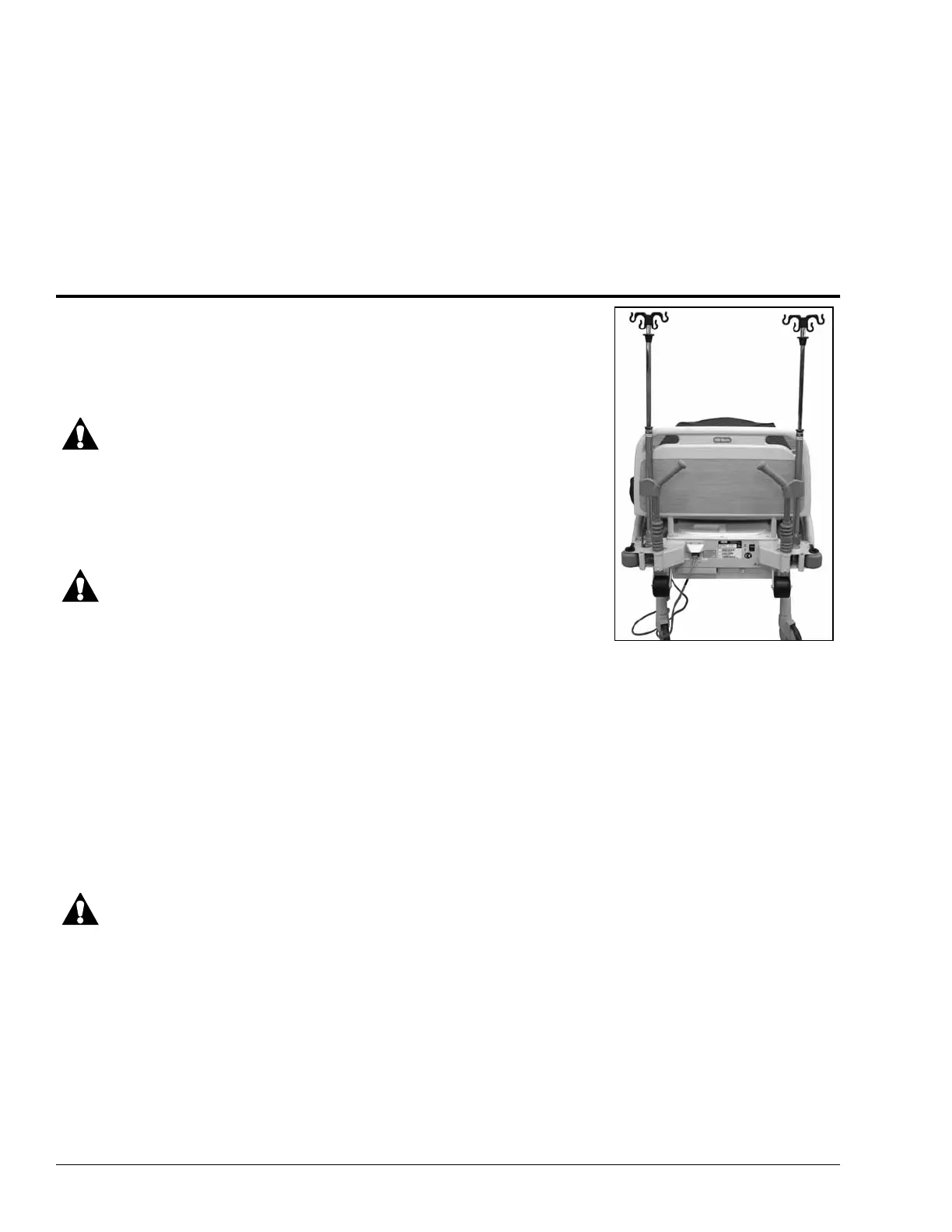 1. Lift the IV pole from its stored position behind the headboard and put it straight up.