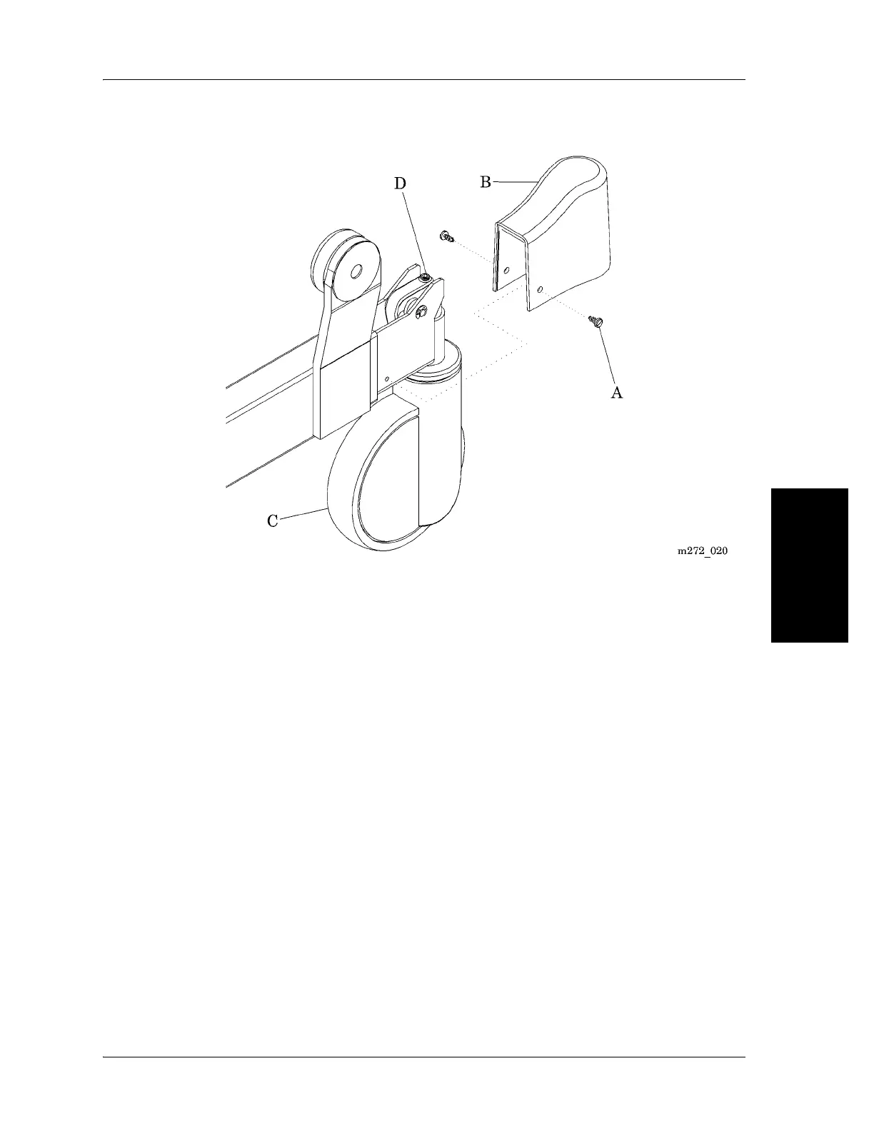 2. Ensure that the caster (C) rolls and swivels freely, and that all brake and