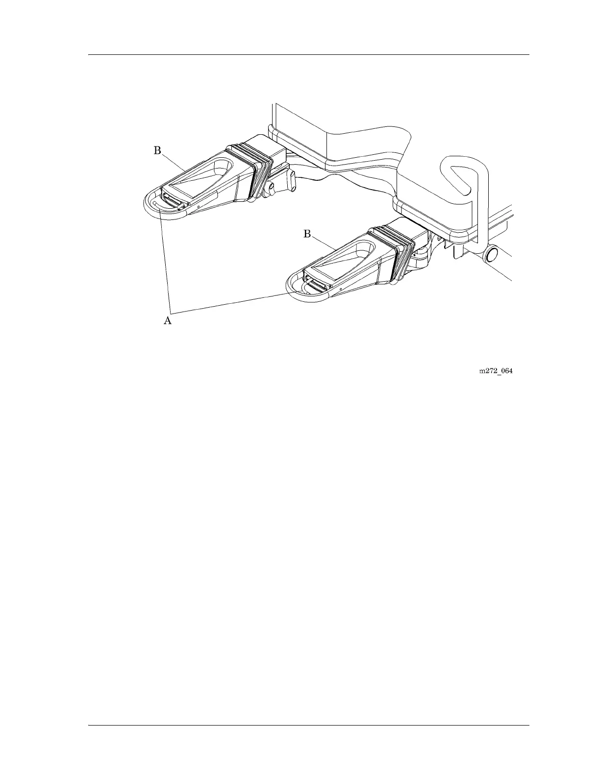 9. Remove the foot support (B) from the foot yoke (refer to procedure 4.12).
