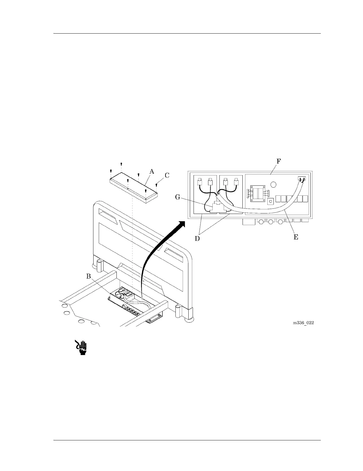 4. Remove the six screws (C) attaching the cover (A) to the control box