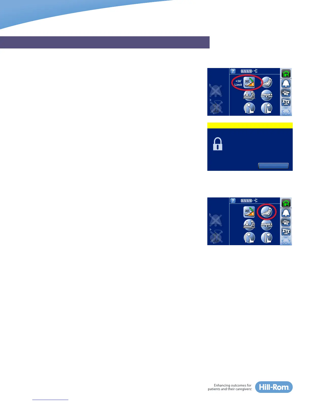 The Head Angle <30° Limit control allows the caregiver to prevent the head-