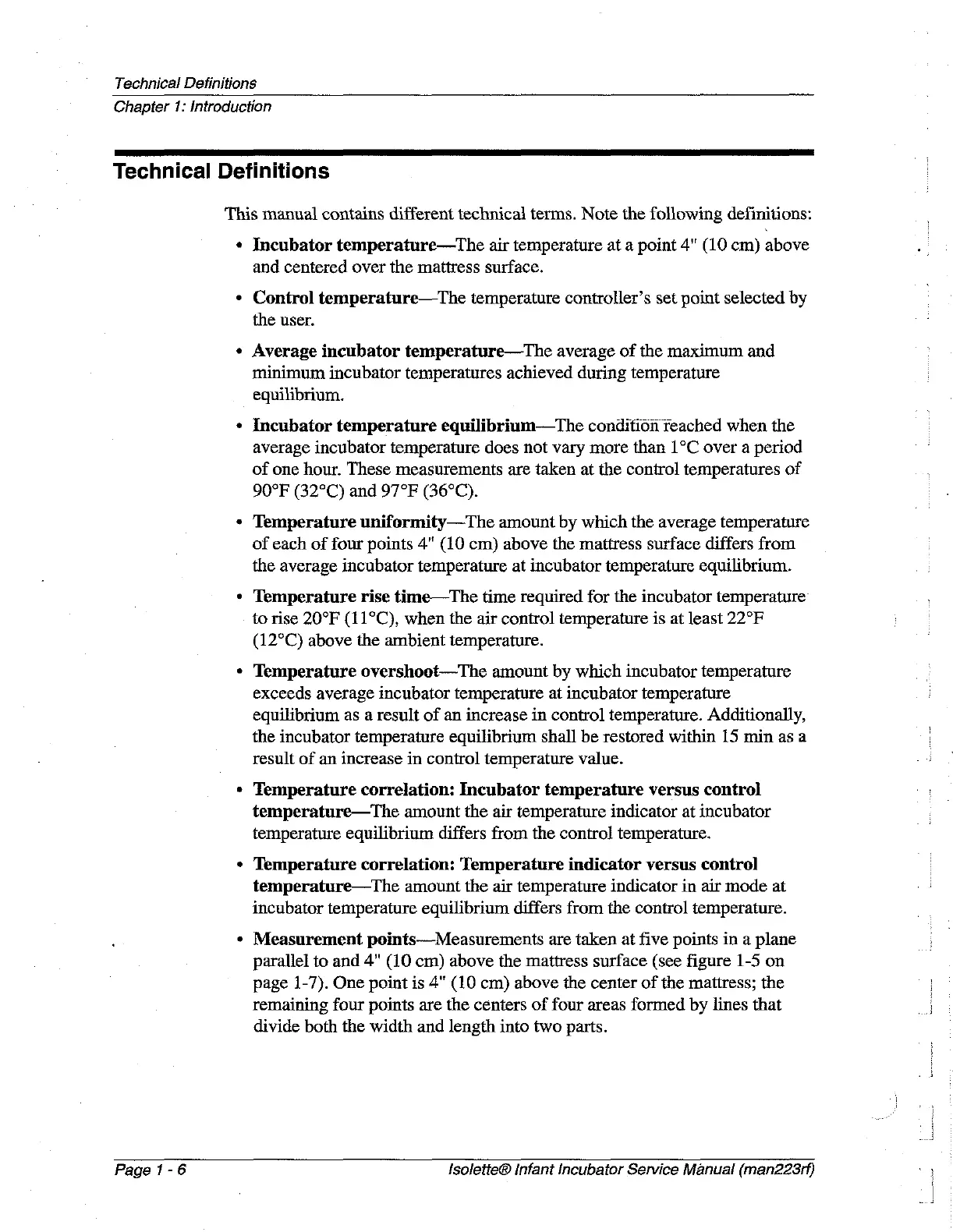 Hill-Rom Isolette C2000 - Technical Definitions