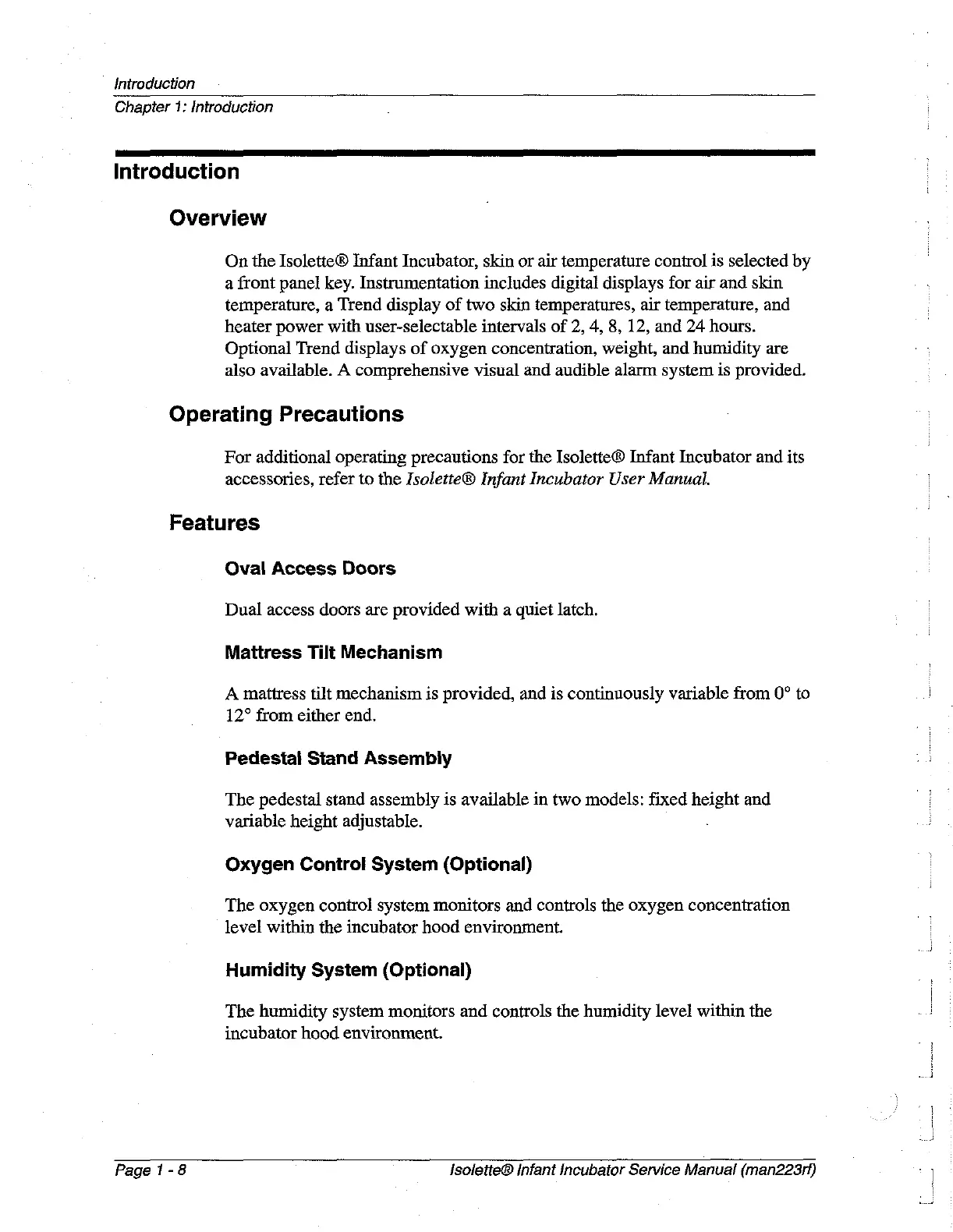 Hill-Rom Isolette C2000 - Overview; Operating Precautions; Features