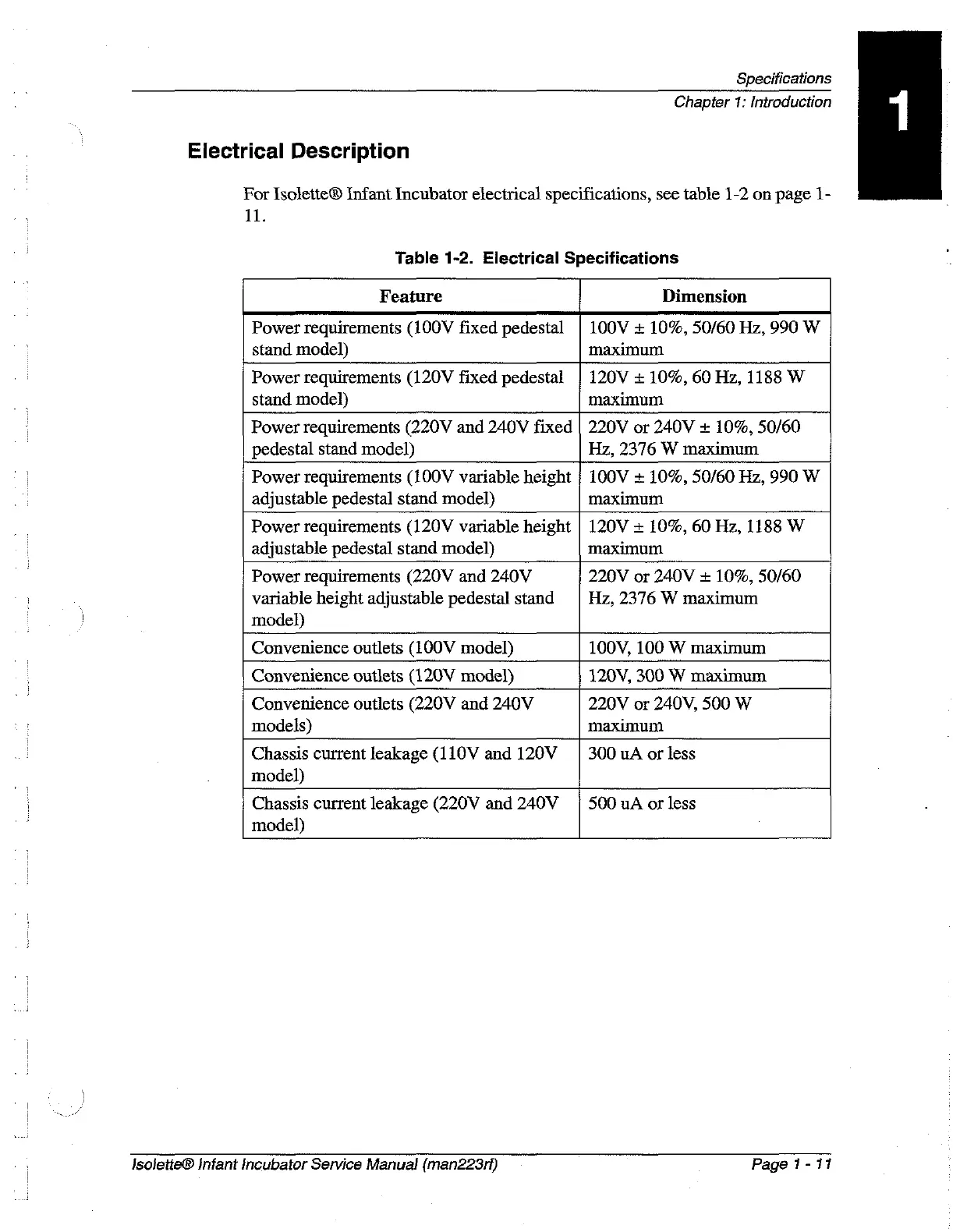 Hill-Rom Isolette C2000 - Electrical Description