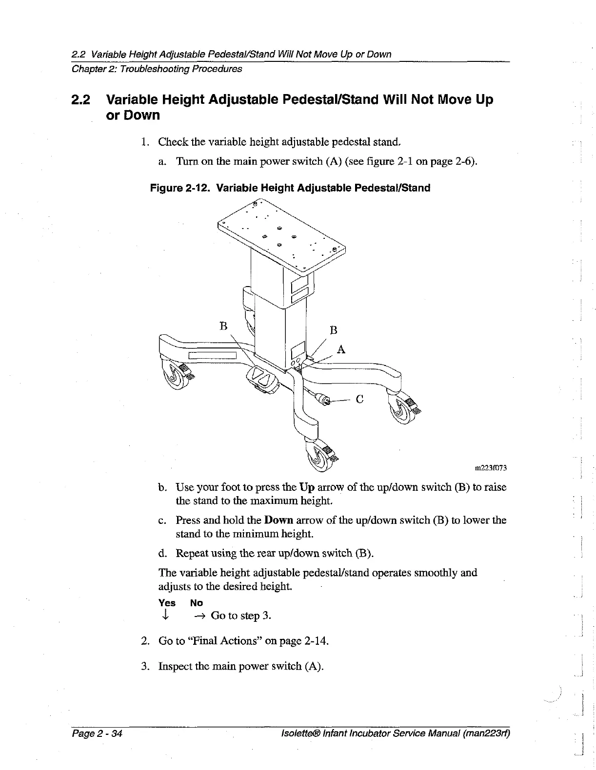 Hill-Rom Isolette C2000 - Variable Height Adjustable Pedestal;Stand Will Not Move Up or Down
