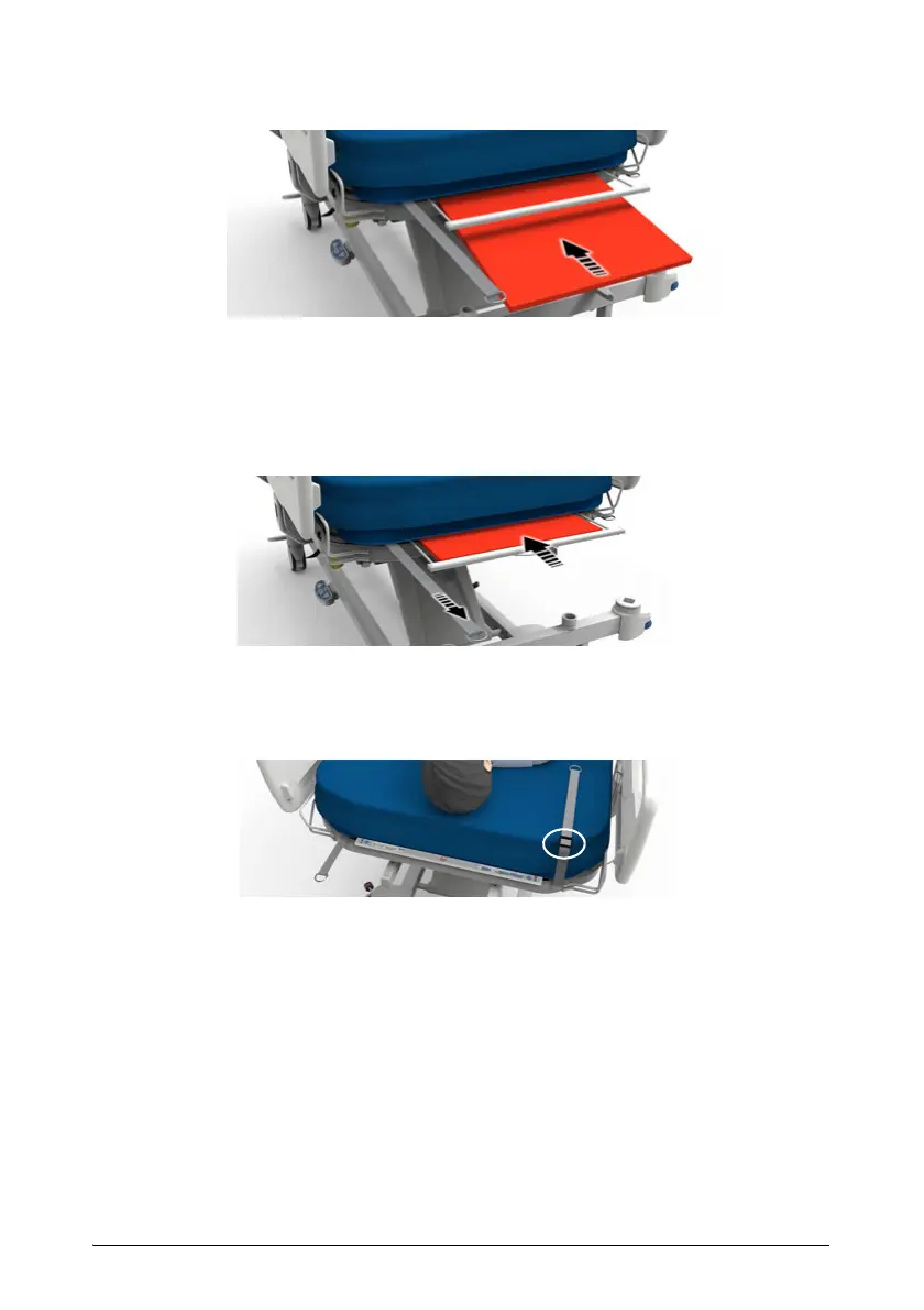 11. Position the patient on the bed with their hips by the marker on the siderail.