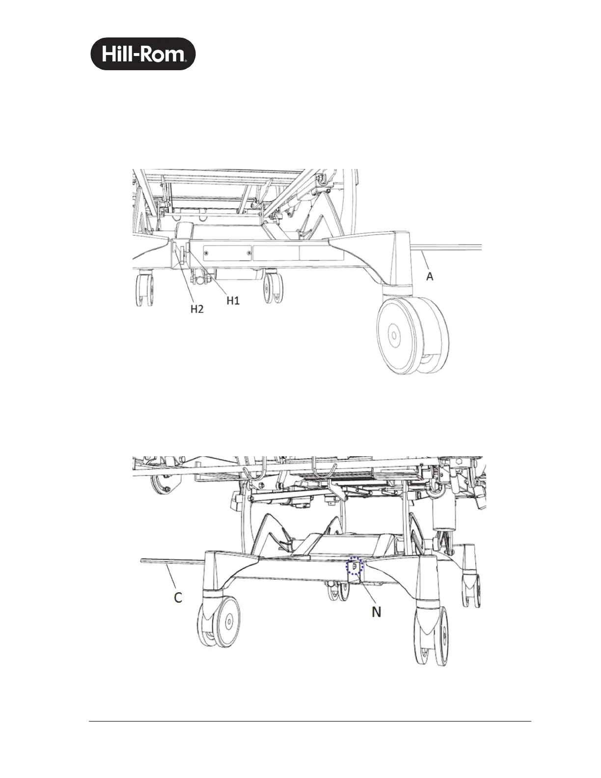 4. At the head end of the bed, insert new hex bar head end (C) until it goes through the
