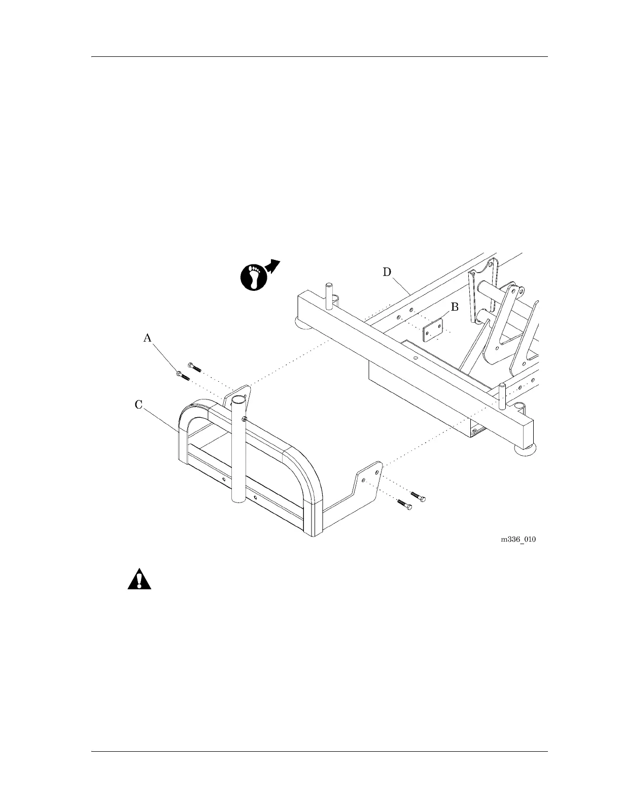 1. Install the four bolts (A) and two backing plates (B) to attach the trapeze