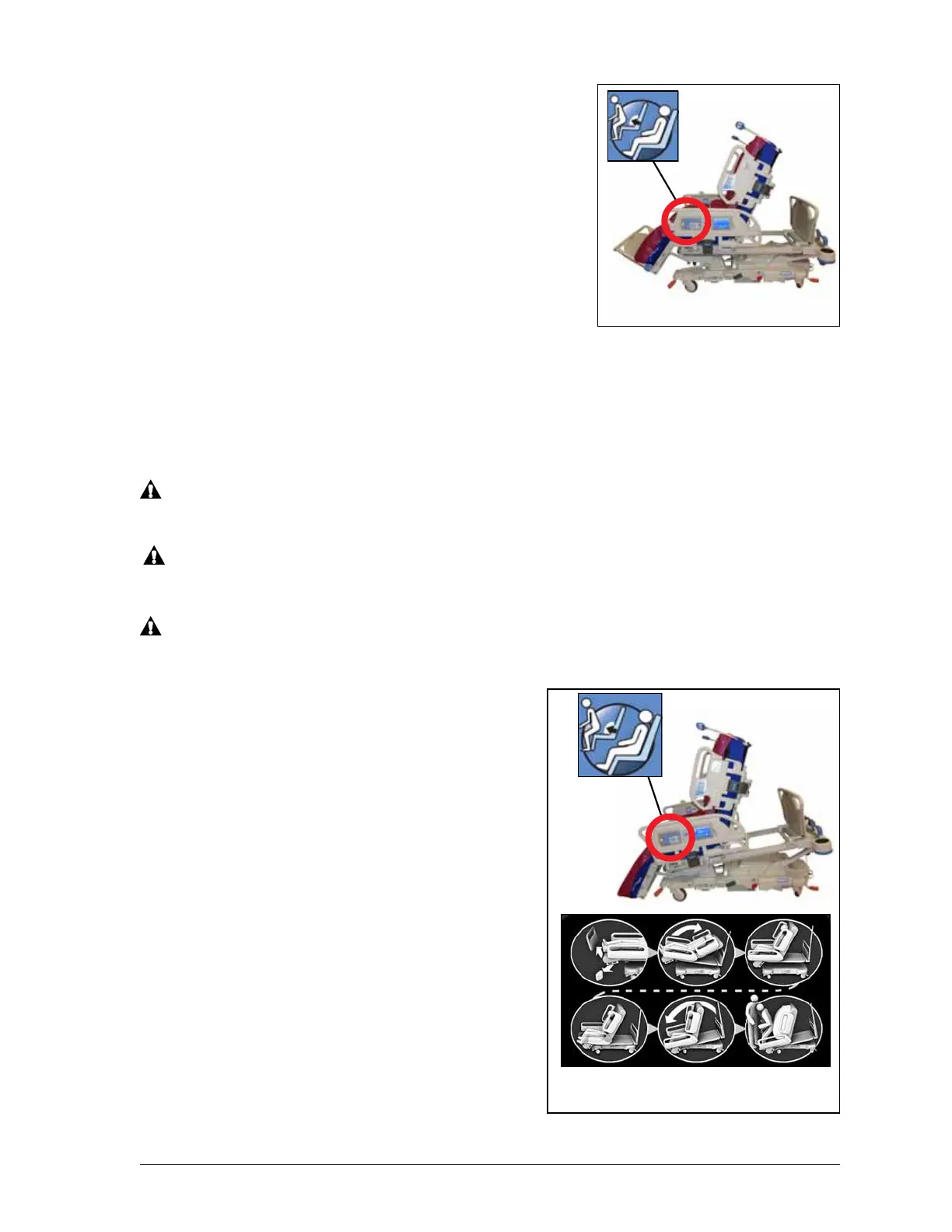 Do not transport a patient with the bed in a chair position. Injury to the patient may occur.