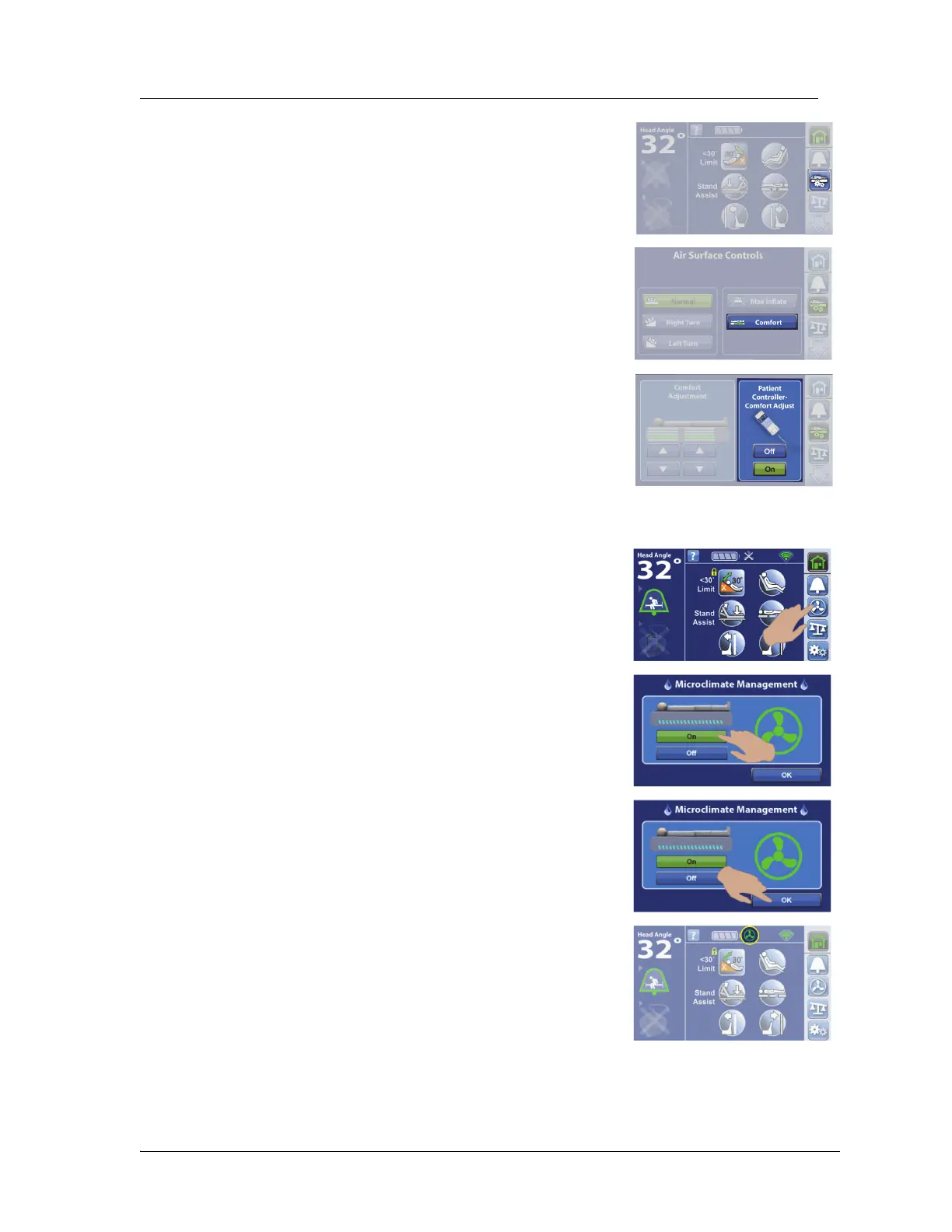 3. Press On or Off to allow the use of the comfort controls on the