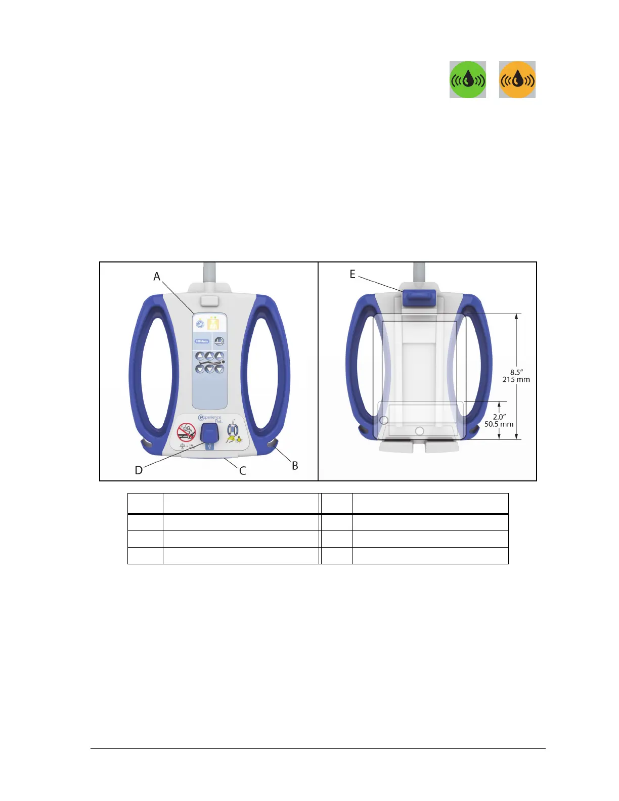 A Patient controls (optional) D USB charging port