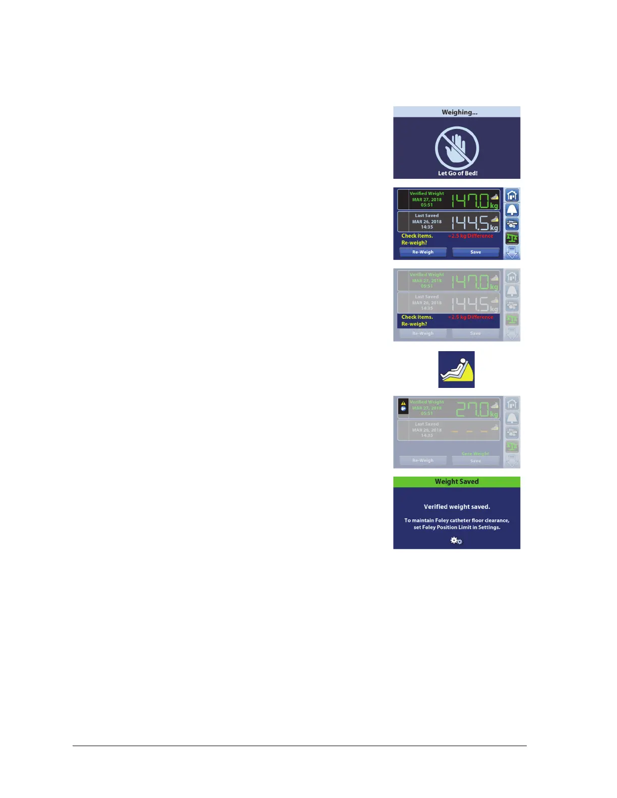 • Re-Weigh—bed will repeat the steps to weigh the patient
