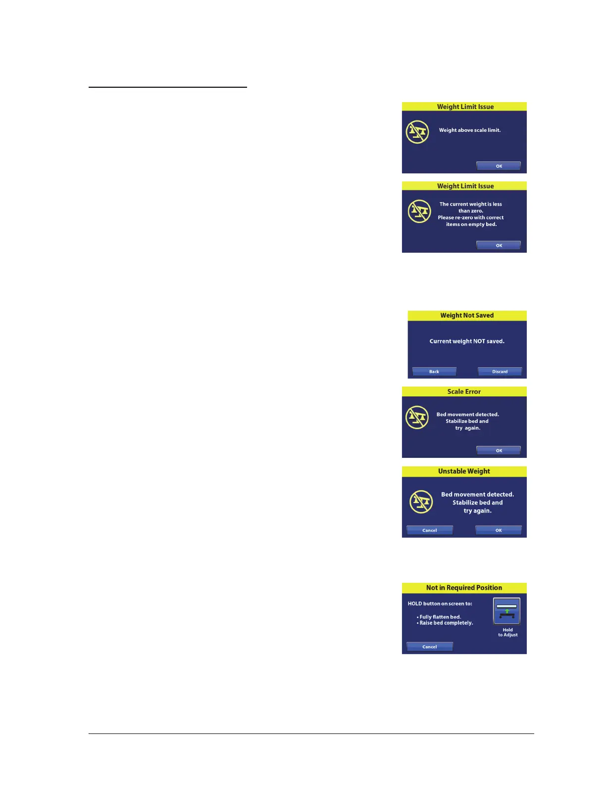 Unstable Weight Error (Scale “B”; bed movement problem)—this