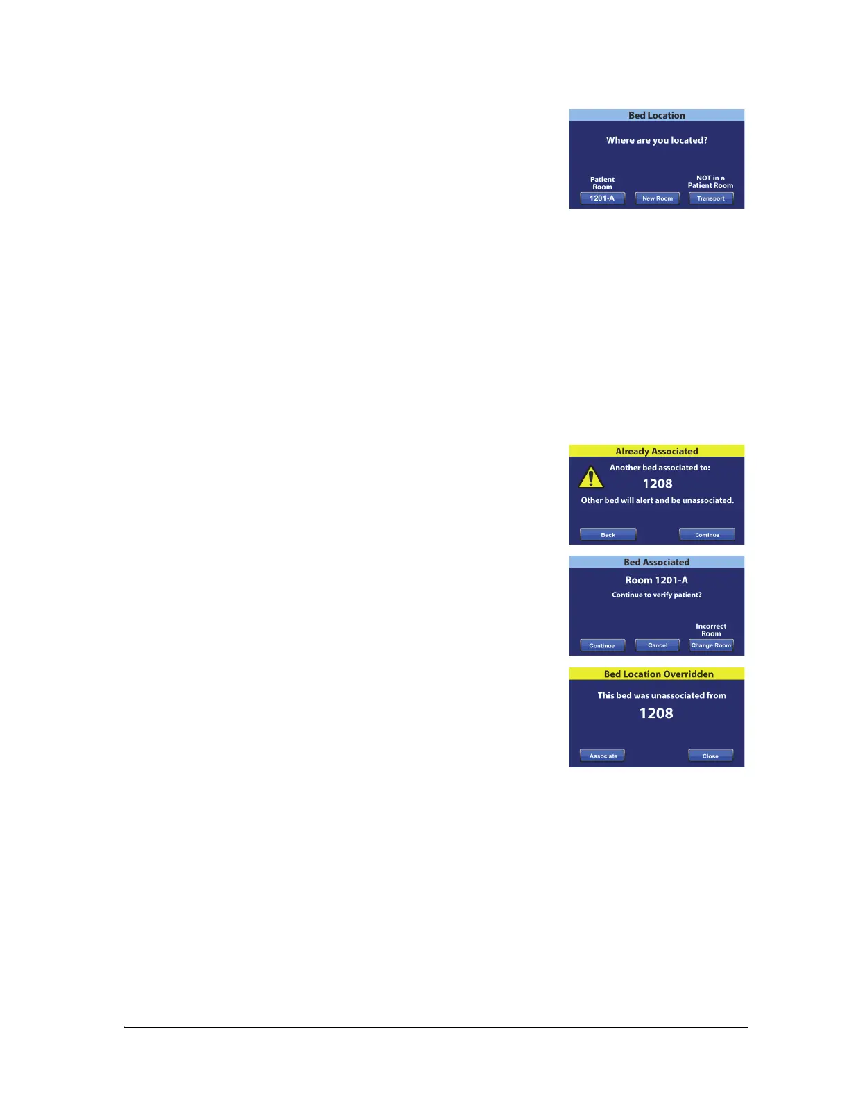 screen will show. See “Associate a Room to the Bed” on page 76.