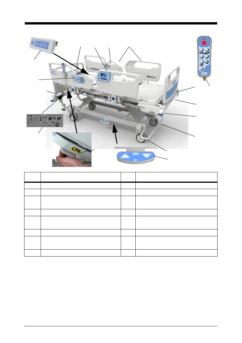 E Head section “CPR” control M Bilateral HiLow pedal with
