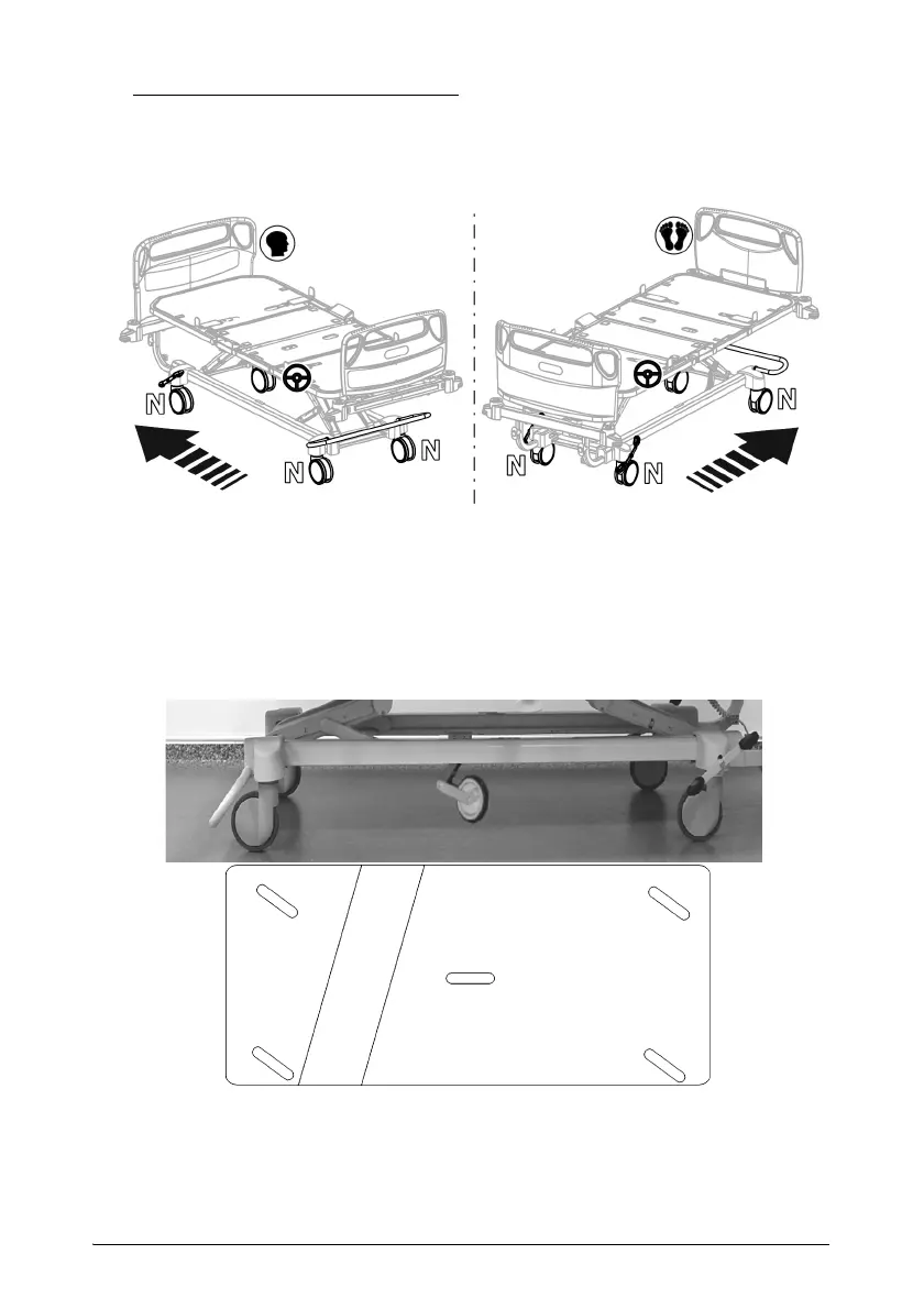Before moving the bed sideways, check that the brake and steer bar is in the