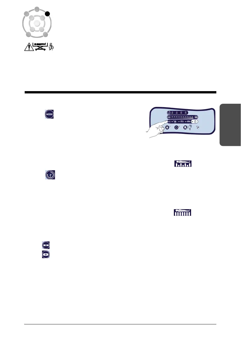 condition of the patient in all the operating modes using the comfort settings buttons: