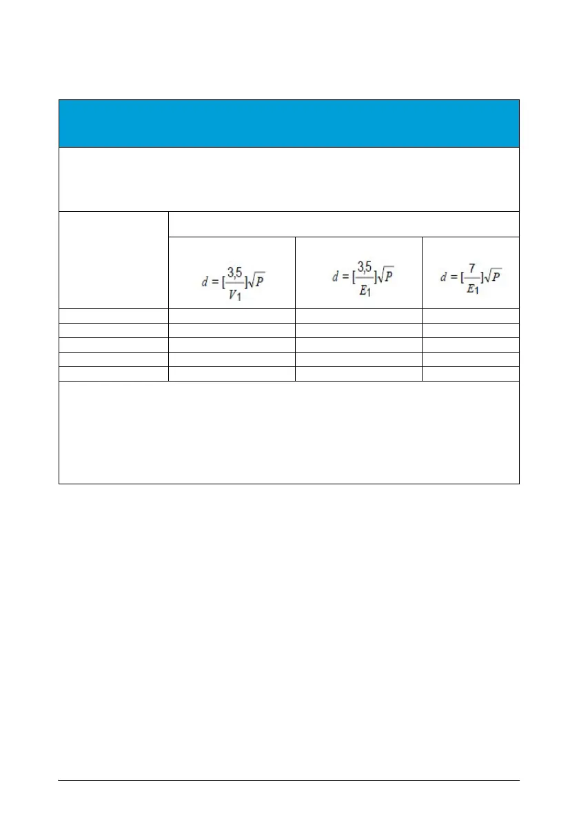 separation distance in meters (m) can be estimated by using the equation applied to the transmitter